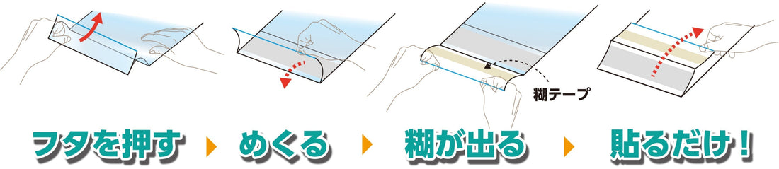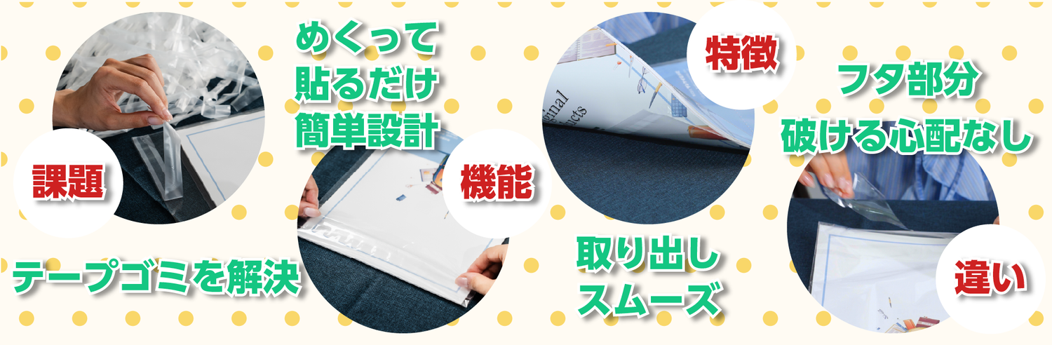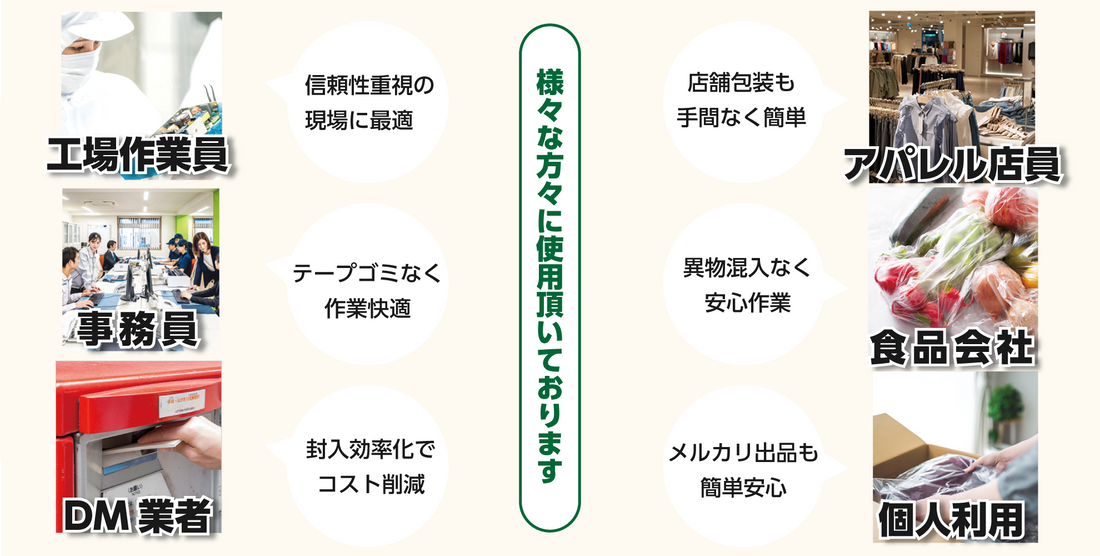 開封がラクで中身もスムーズに取り出せ、のりが商品に付かないのでストレスなく使え、さらに再利用できるから無駄なく便利にお使いいただけます。